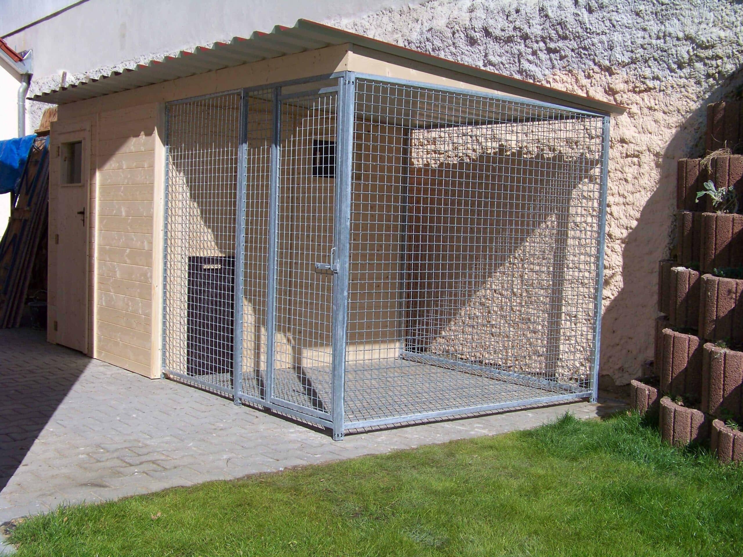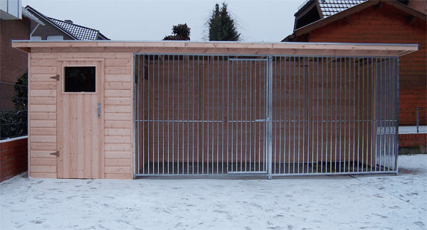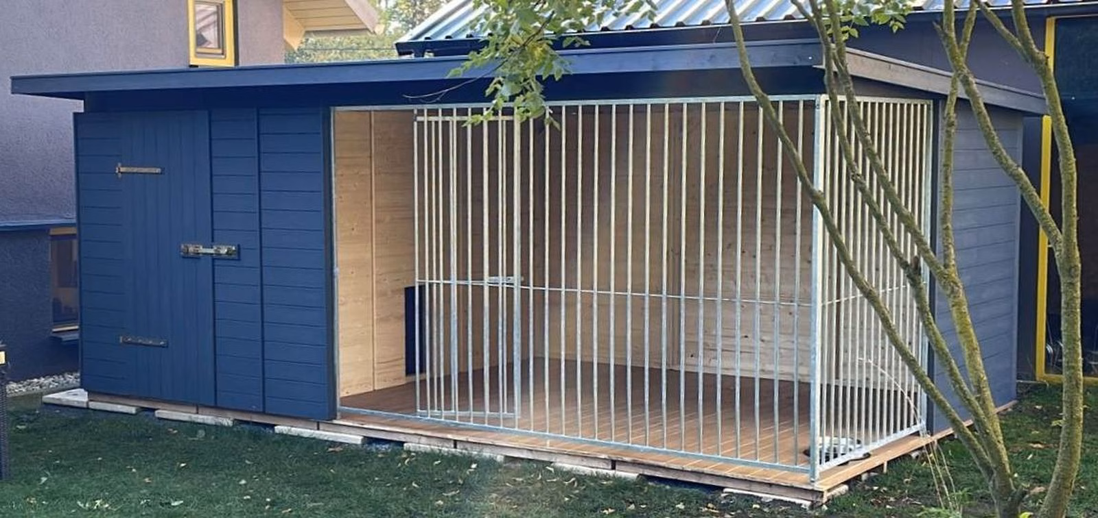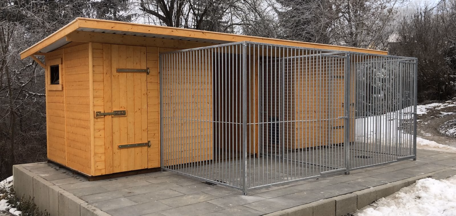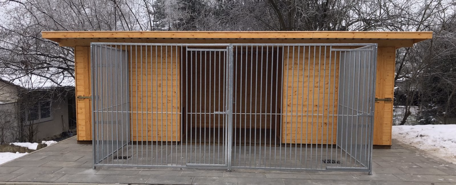 Auf Wunsch kann das Modell auch als Doppelzwinger oder als Teil einer Reihenzwingeranlage gebaut werden – perfekt für Zuchtanlagen oder Mehrhundehaltung.