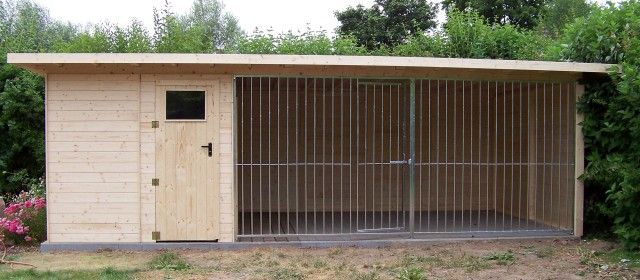 Hundezwinger Helsinki mit integriertem Züchterraum, Hundehütte und Auslauf