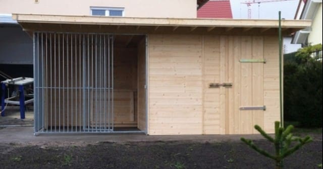 Wahlweise mit integrierter Hundehütte oder Schutzraum